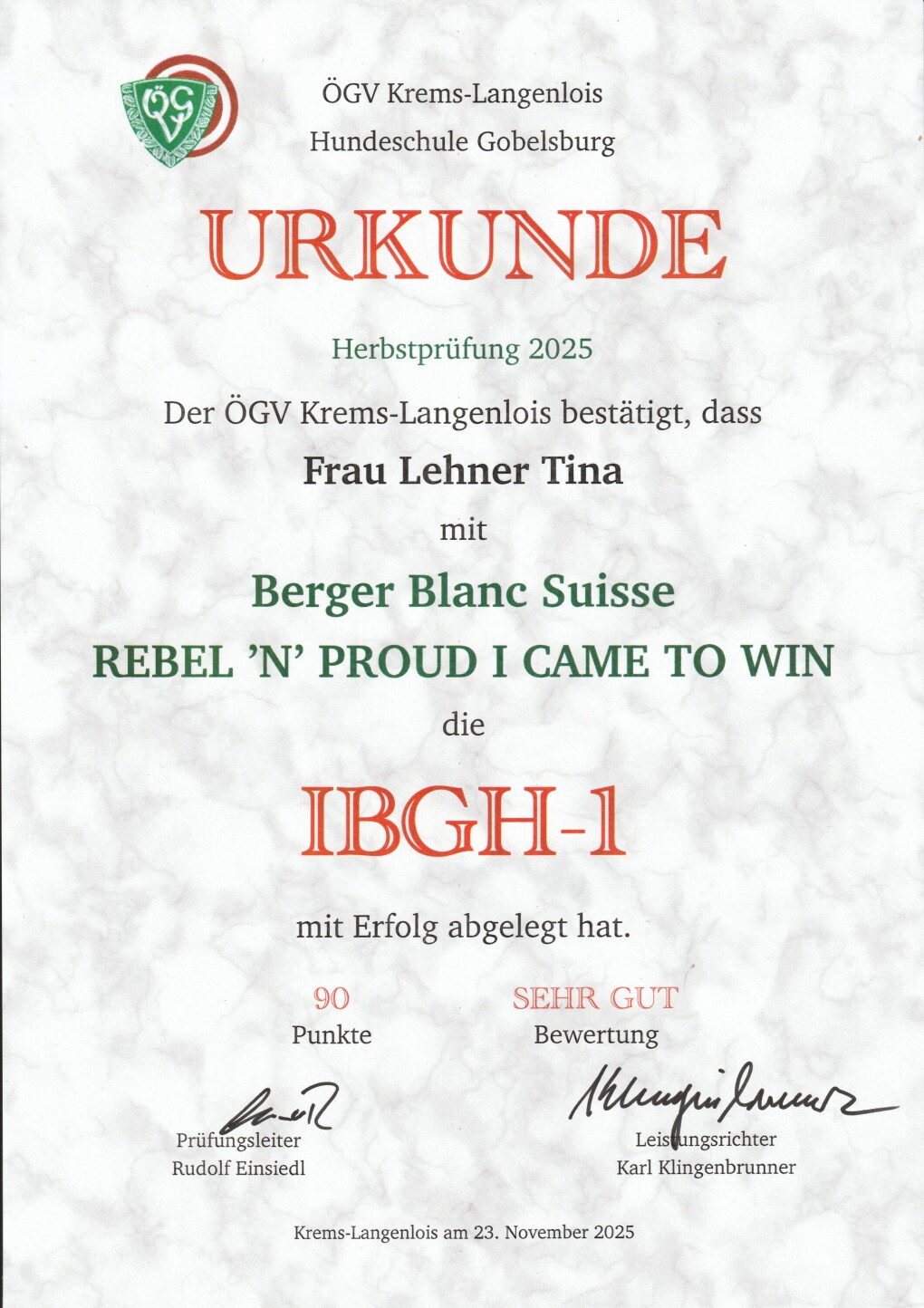 Titel/Erfolge: C.I.B-J, Puppy BIS, Junior BOG,FCI1 BOG1, ÖJCh, BOB